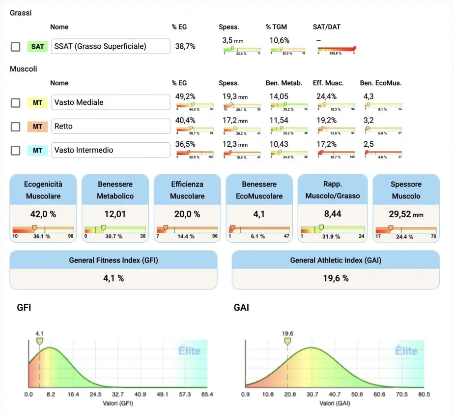 - Benessere Metabolico: Mette in relazione la luminosità del muscolo rispetto all'adipe